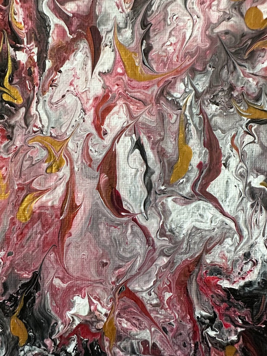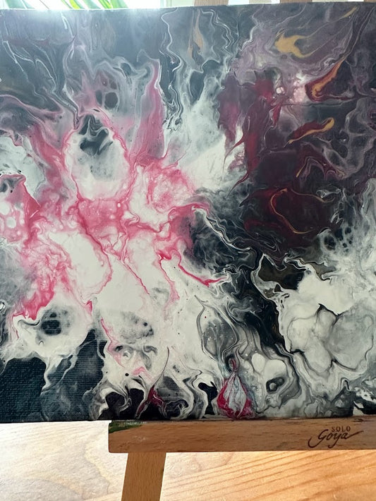 Abstraction in Black, White, Red, and Gold. Acrylic. Fluid art. Canvas. Vanished. 24x30 sm