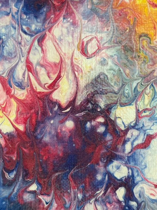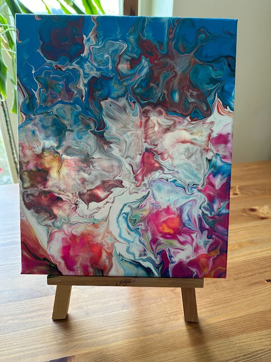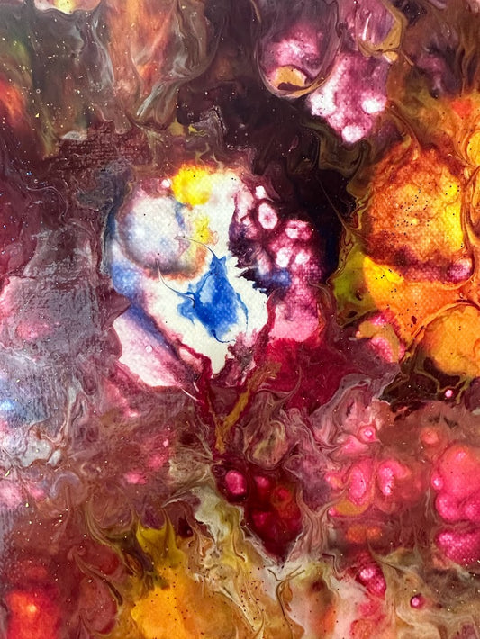 The heart. Acrylic painting. Fluid art. Canvas. 20x 30 sm.
